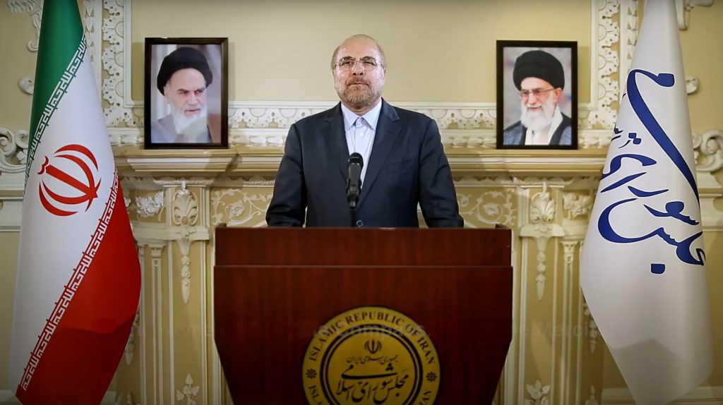 Interview du président de l’Assemblée consultative islamique (Parlement iranien), Mohammed Bagher Ghalibaf, à l’IRIB (télévision d’Etat iranienne) le 11 juillet 2025.