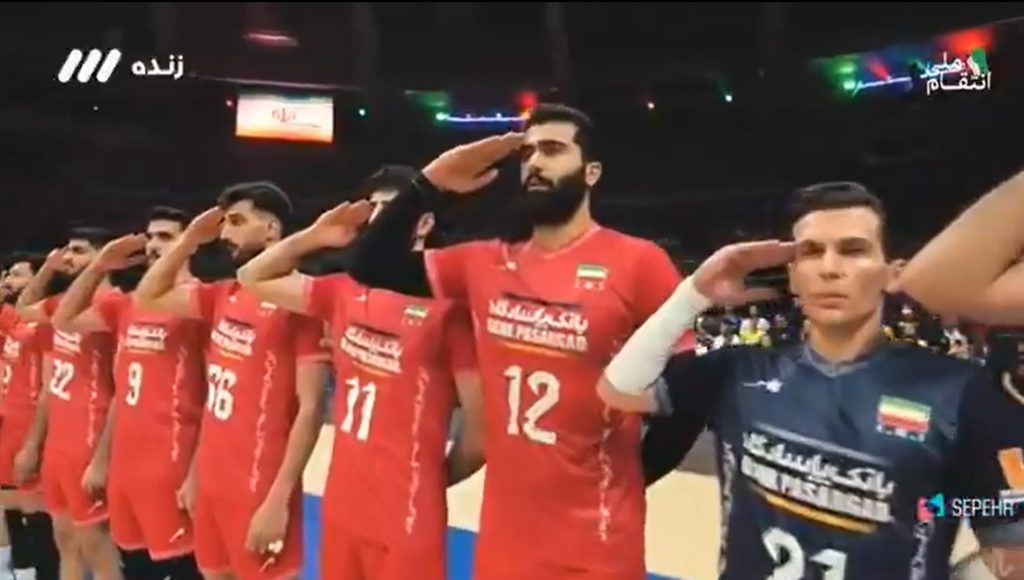 Capture d’écran : Salut militaire des volleyeurs iraniens en Ligue des nations