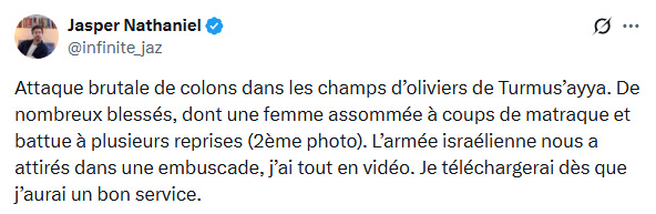 Le témoignage du journaliste américain Jasper Nathaniel sur X (Twitter)