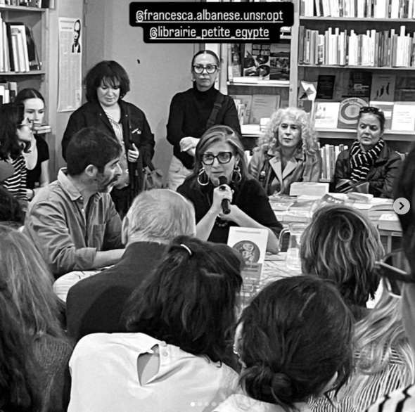 Francesca Albanese lors de son intervention à la librairie Petite Égypte