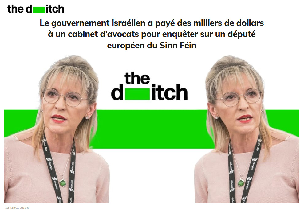 The Ditch évoque le cas de la députée européenne du Sinn Féin, Martina Anderson, qui avait critiqué en 2016 l’influence des lobbyistes israéliens au Parlement européen, les comparant à une « éruption cutanée ».