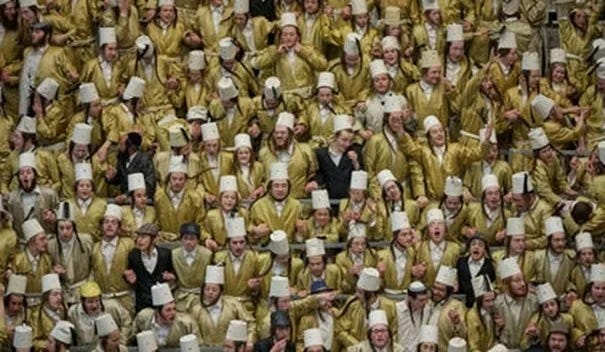 L’étape suivante du premier ministre fut la version jérusalémite de Téhéran, la yechiva sioniste-religieuse Mercaz Harav, pour une lecture de la megilla de Pourim. Entouré de mollahs barbus et d’étudiants de yechiva échappant à la conscription chantant à partir du Livre d’Esther « les Juifs eurent autorité sur ceux qui les haïssaient », Netanyahu battant la mesure avec eux, en tapant sur la table.
