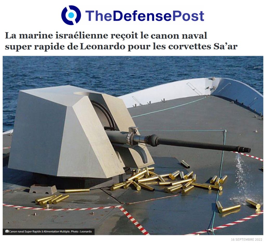 La marine israélienne a reçu le canon naval 76/62 Super Rapid Multi-Feeding de l’entreprise d’armement italienne Leonardo pour deux corvettes de classe 6 Sa’ar à sa base navale de Haïfa